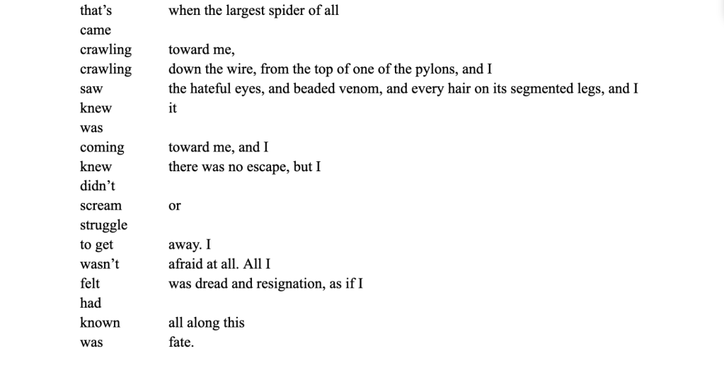 […] my experiences with OCD in a few Constellations posts, as well as metaphorically in my poem “A Memoir in Spiders“, so clearly this is a meaningful subject for me. One would think this means I only […]